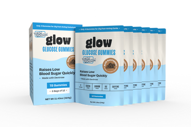 Glow Gummies are made with dextrose for fast, effective relief. Each gummy has 4 grams of fast-acting carbs in a delicious, natural, dye-free fruit flavor with a soft, easy-to-chew texture. A simple, clean, tasty, and convenient way to manage your glucose needs!